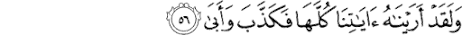 20.56 And We certainly showed him (the sense of superiority complex) Our signs - all of them - then he denied and refused.